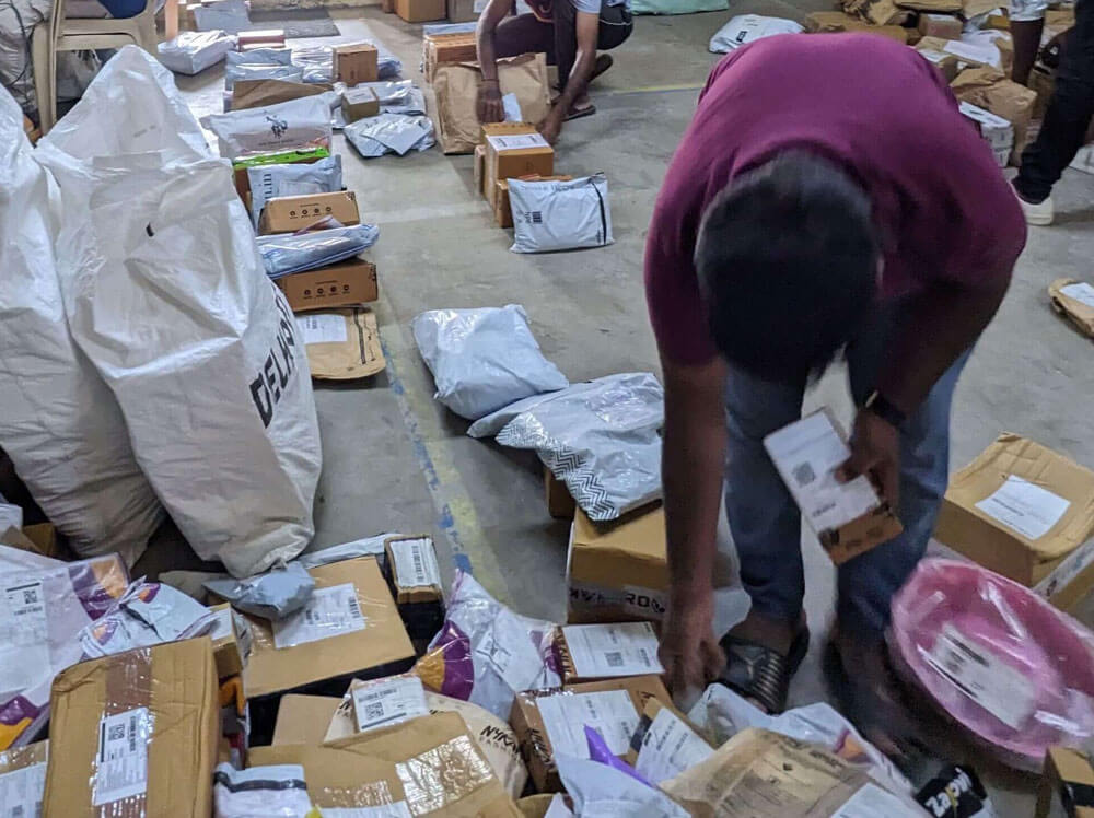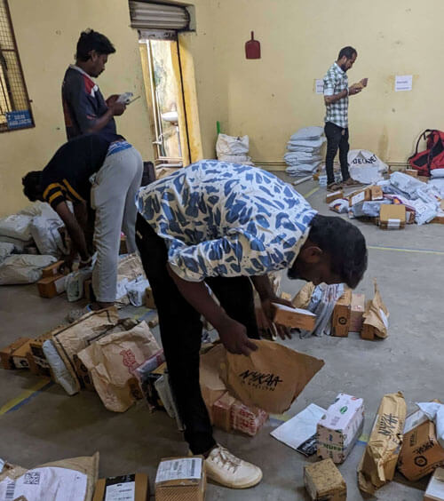 Drivers crosscheck list of orders from app are matching with shipments in hand.