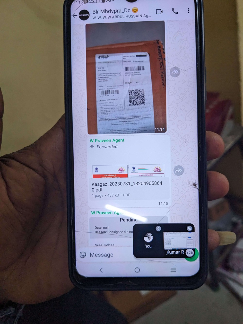 delivery from flipkart madam, coming in 20 minutes, okay?