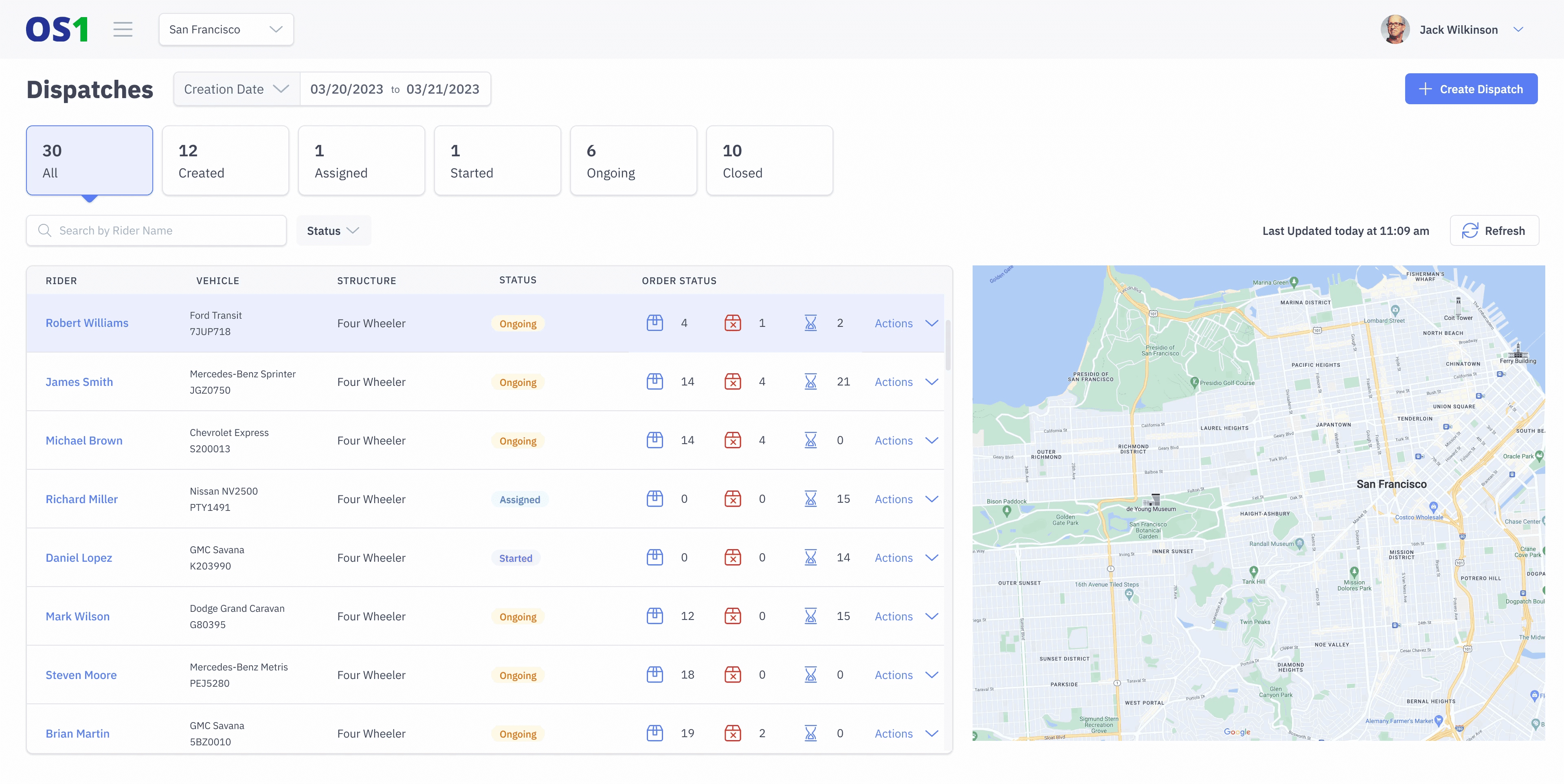 OS1 Driver App depends on DispatchOne dashboard to receive orders.