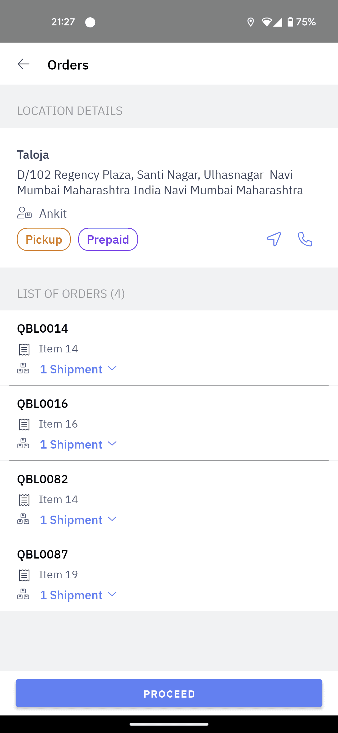 Adding call button in order list.